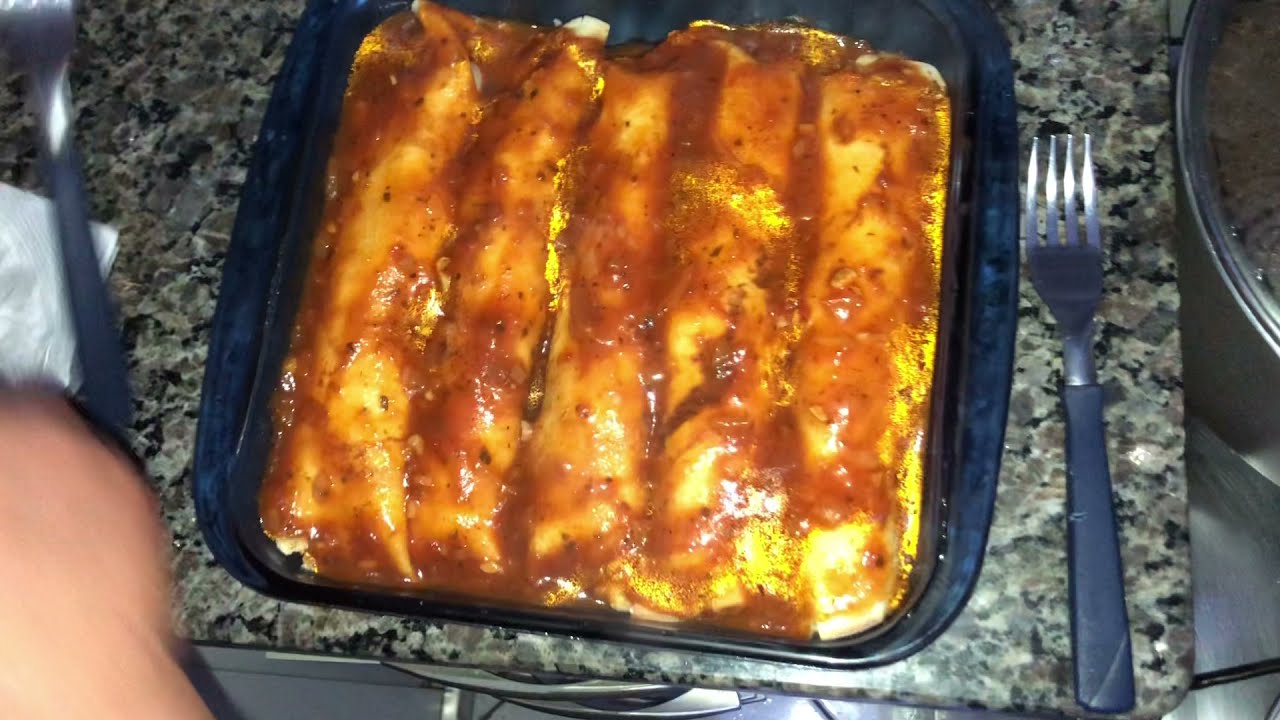 - Coloque uma porção do recheio em cada panqueca e enrole.